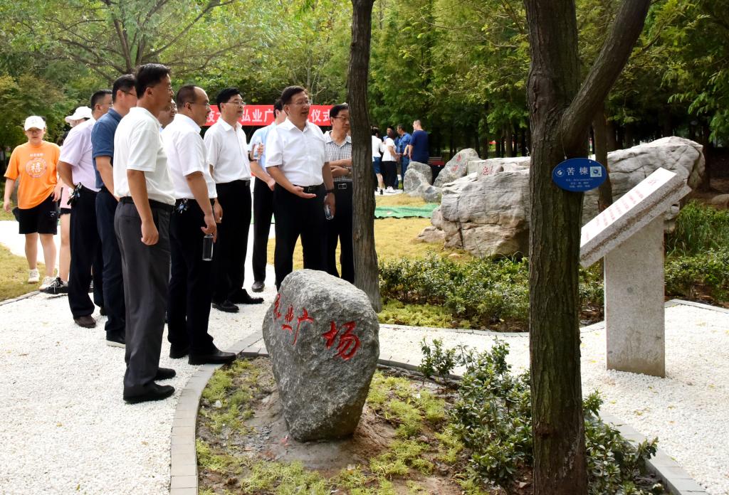 仪式上,张英杰和孔建中为弘业广场建成揭牌。仪式结束后,与会人员实地参观了弘业广场的建设情况,倾听了对来自淄博洪山、济南无影山、泰安泰山、青岛崂山的四组景观原石的由来和意义的介绍。