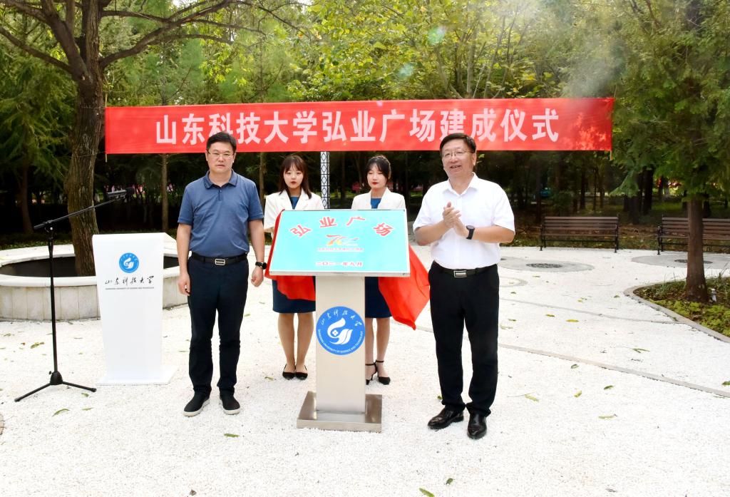 9月23日,在即将迎来建校70周年华诞之际,学校举行弘业广场建成仪式。校党委常委、副校长张英杰,校党委常委、宣传部部长李克周,捐建人山东永恒电子科技有限公司董事长、校友孔建中,崂山石捐赠人青岛迅维网络科技有限公司董事长兼总经理、校友田璐铭及学校相关部门、单位负责人出席建成仪式。基建处处长吴正龙主持仪式。