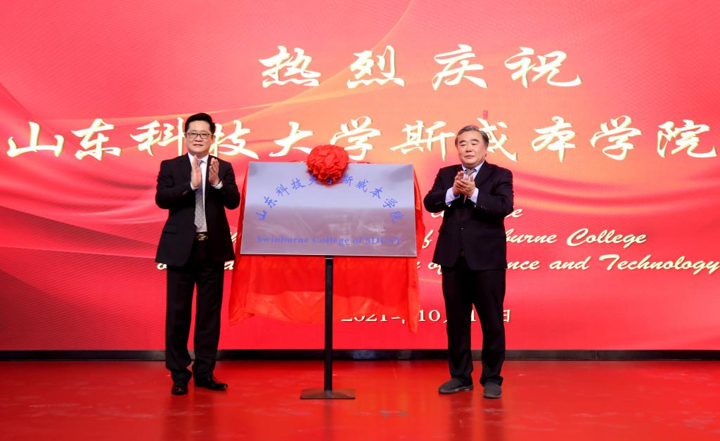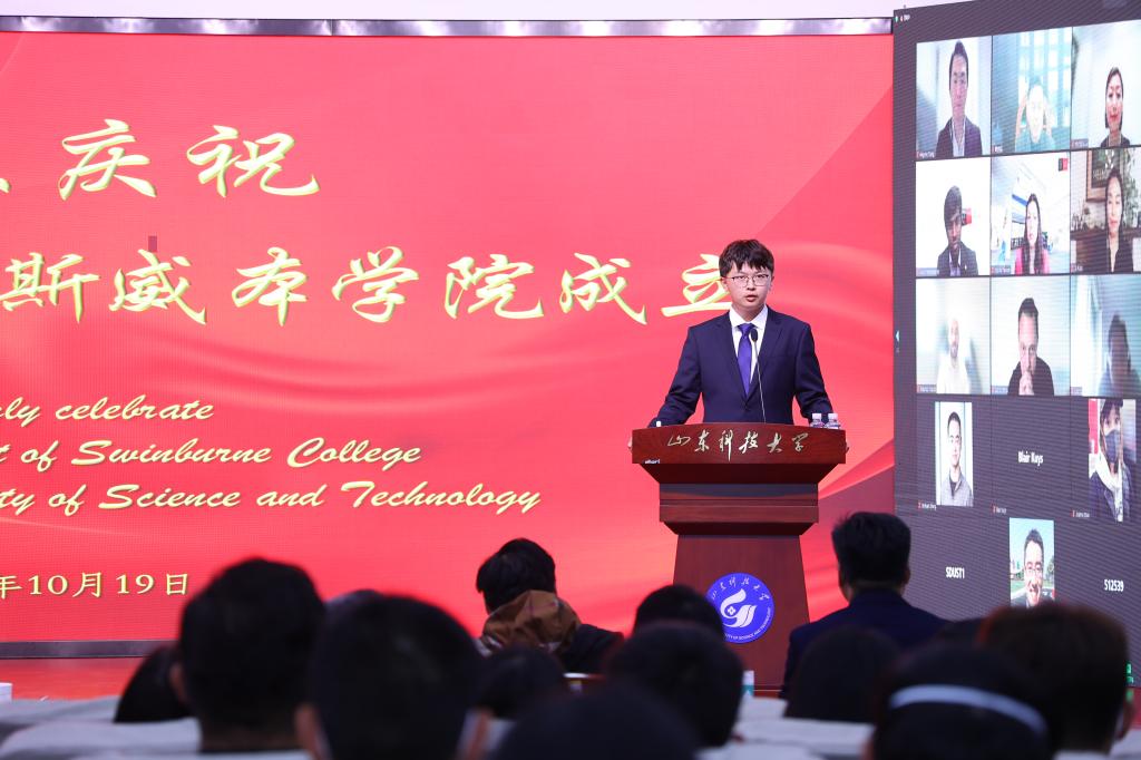 刘欣堂在致辞中向斯威本学院的正式成立表示祝贺。他对斯威本学院建设提出三点要求,一是要树牢社会主义办学方向,坚持党的领导,贯彻党的教育方针,坚持面向经济社会发展需要,遵循教育发展人才成长规律,深化教学改革,提高办学水平和人才培养质量,面向世界,面向未来,面向现代化,努力培养更多更好的国内外经济社会发展需要的高水平高层次人才;二是要坚持高标准高起点建设,坚持以我为主、为我所用的原则,做好优质教育资源的引进、消化、吸收和融合创新,在高质量、优结构、可持续中探索教育对外开放的新路子;三是要积极服务于山东现代化强省建设,充分发挥地处省会贯通青岛的地理优势,进一步凝练学科特色,创新人才培养模式,提升办学质量和水平,服务高等教育改革发展,为全面开创新时代现代化强省建设新局面贡献山科大的力量。