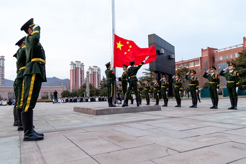 天蒙蒙亮,外国语学院的学子齐聚广场举行了“开学第一课”——升旗仪式活动,以良好的精神风貌迎接新学期。英语2021-5班郄怡哲说:“今年恰逢中国共产主义青年团建团100周年,我们在新学期第一天迎着朝阳,共同感受共青团的历史脉搏,呐喊青春一代的铮铮誓言,非常振奋人心。”学院团委书记田禹表示:“升旗仪式是最好的爱国主义教育形式之一,会带给学生潜移默化的影响。希望学生们在新的学期坚定理想,实干力行,学好专业知识,厚植爱国主义情怀,勇做走在时代前列的奋进者、开拓者、奉献者。”