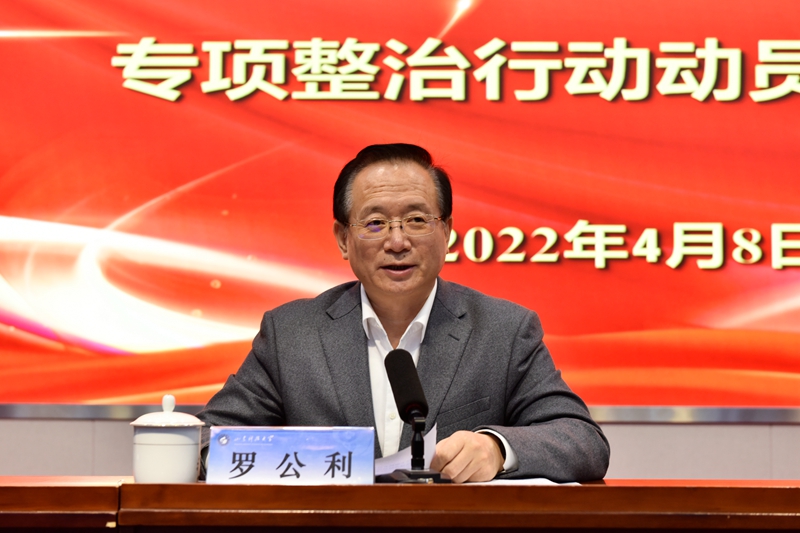 校党委书记罗公利讲话,校党委副书记、校长姚庆国主持,校党委副书记尹华部署加强作风建设专项行动和重点领域廉政问题专项整治行动工作,校纪委书记夏侯雪娇作纪检监察工作报告。校领导、校党委领导班子成员,各部门、各单位副处级以上干部,各学院学术院长、副院长及各专职科研机构负责人,机关科级干部参加会议。