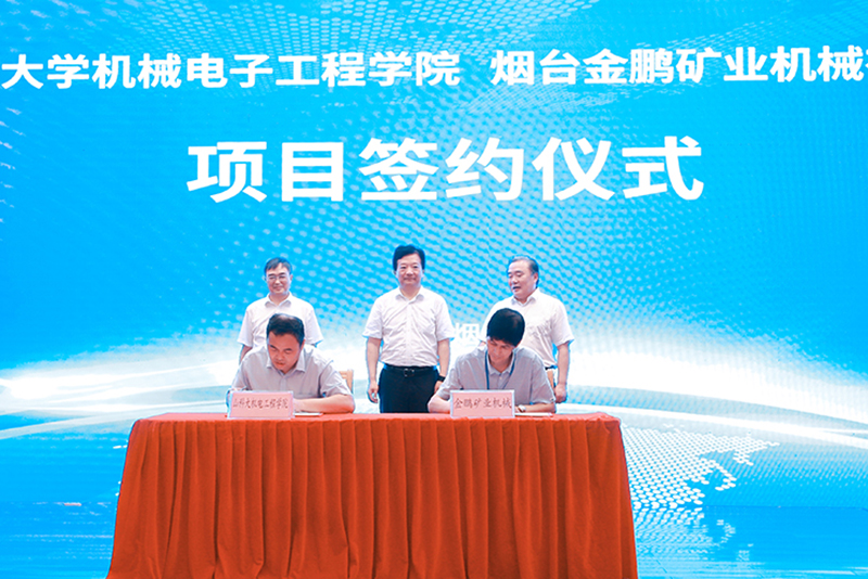 仪式上,开云链接入口站官网_开云(中国)机电学院、化工学院、材料学院分别与烟台市道恩集团、山东坤泰新材料科技股份有限公司、烟台金鹏矿业机械有限公司签订项目合作协议。
