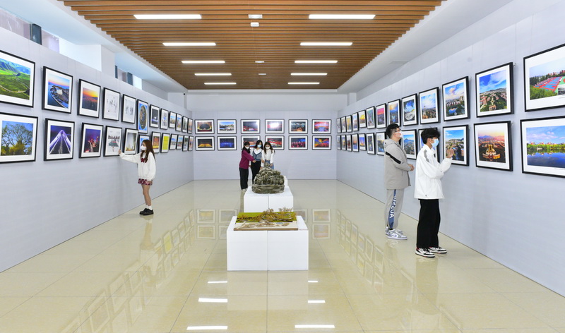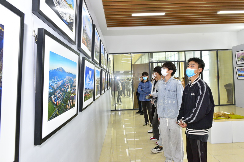 师生在展厅欣赏摄影作品