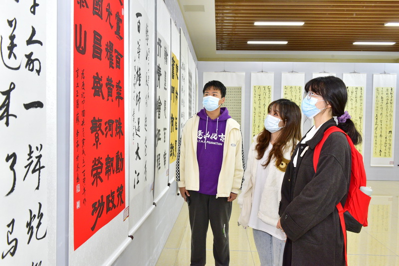师生在展厅欣赏书法作品