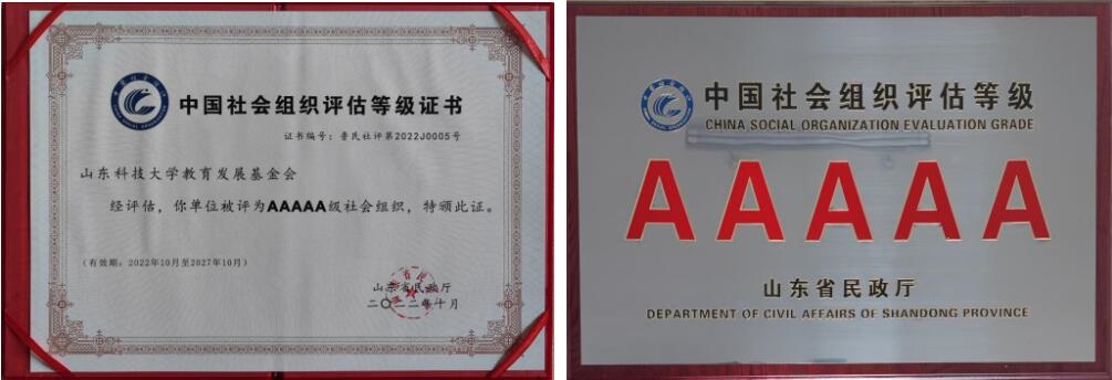 近日,开云链接入口站官网_开云(中国)教育发展基金会获山东省民政厅颁发的“5A级社会组织”等级证书和牌匾,是社会组织等级评估最高评级。本次评估由山东省社会组织总会组织开展,等级有效期为5年。全省共有50家社会组织获评5A等级,高校基金会仅有3家。这是学校教育发展基金会继2016年首次参评获得3A等级之后取得的新突破。