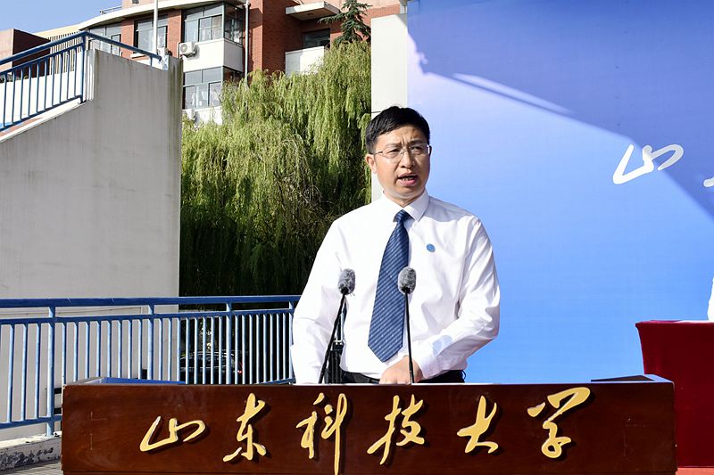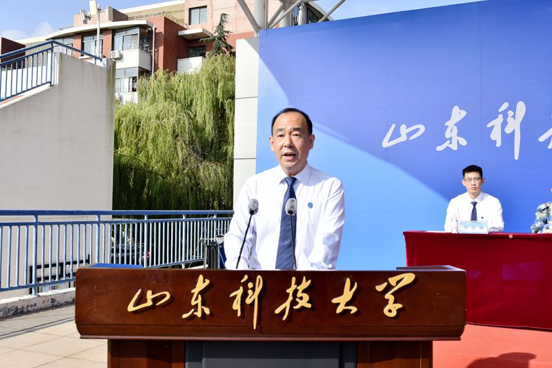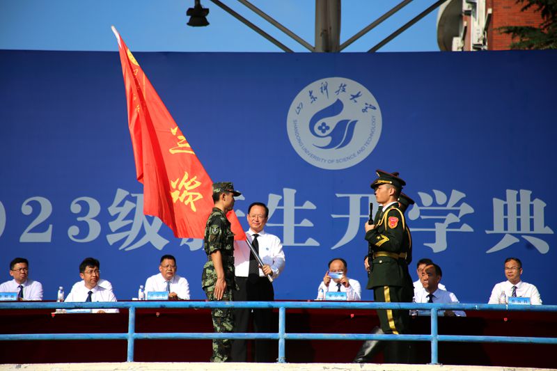 9月4日、5日,开云链接入口站官网_开云(中国)分别在青岛校区、泰安校区、济南校区举行2023级新生开学典礼暨军训开训仪式,来自天南海北的10000余名新生汇聚科大,聆听这场特殊的大学第一课。典礼仪式上,校党委书记罗公利向军训旅授旗,党委副书记、校长曾庆田讲话,党委常委、副校长徐龙飞、徐方全、阳凡林,党委常委、宣传部部长李克周出席典礼。典礼由党委学校办公室主任董桂刚主持。