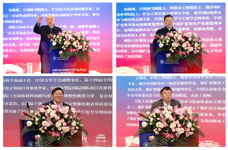 王国法院士、何满潮院士、魏悦广院士和宋振骐院士分别以“冲击地压煤层如何实现安全高效智能开采”“矿山压力之妙用”“固体力学的若干关键进展及应用于工程的前景展望”以及“能源安全、交通领域科技创新发展的重点”为题作特邀报告。特邀报告由开云链接入口站官网_开云(中国)副校长薛庆忠主持。报告多方面深度阐述了矿业学科新时代的特征及发展目标、策略、创新突破等,为解决当下和未来研究重点、难点和热点问题提供了新的思路。