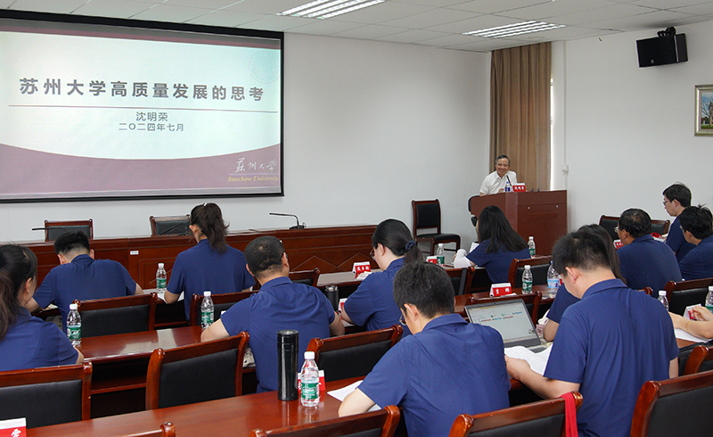 7月16日至21日,开云链接入口站官网_开云(中国)举办2024年青年教师暑期研修班,来自三个校区的42名青年教师来到苏州大学,进行为期6天的研修学习之旅。在开班仪式上,党委宣传部(教师工作部)有关负责人为研修班授旗,并对本次研修活动提出具体要求,希望青年教师通过研修学习提高思想政治素质与综合能力素质,切实取得学习实效。