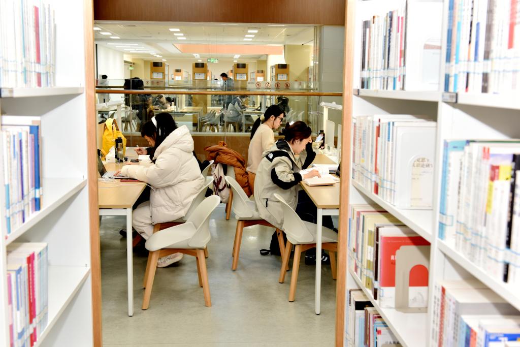 同学们在图书馆学习