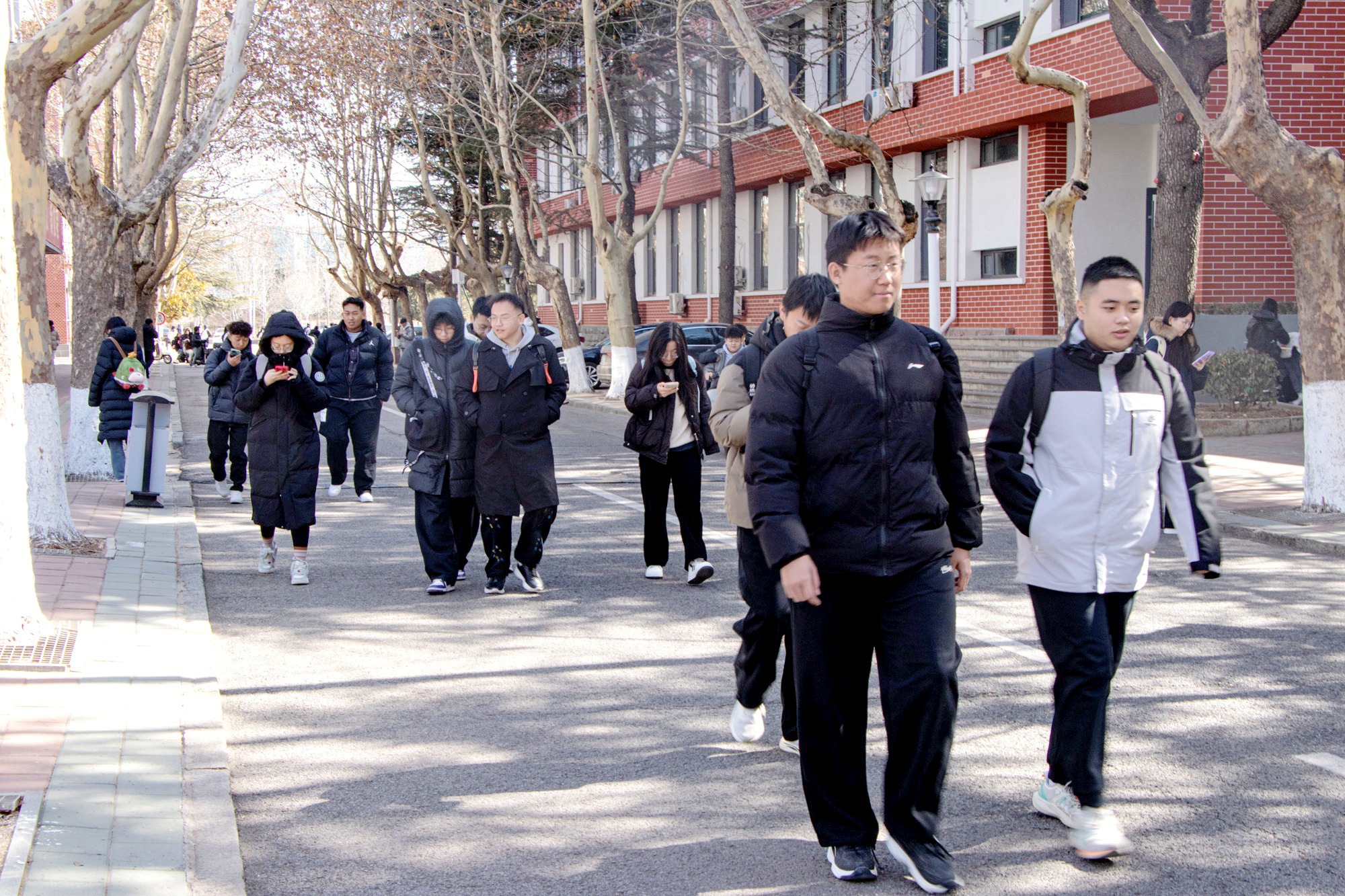 同学们结伴前往教室