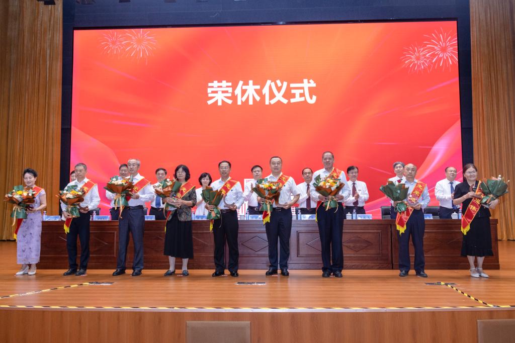 大会专门举行了退休教师荣休仪式。荣休教师代表上台接受纪念奖杯,学生代表为其献花。校领导在仪式上高度肯定退休教师数十年如一日躬耕教坛、潜心育人的奉献精神,感谢他们为学校发展奠定的坚实基础。
