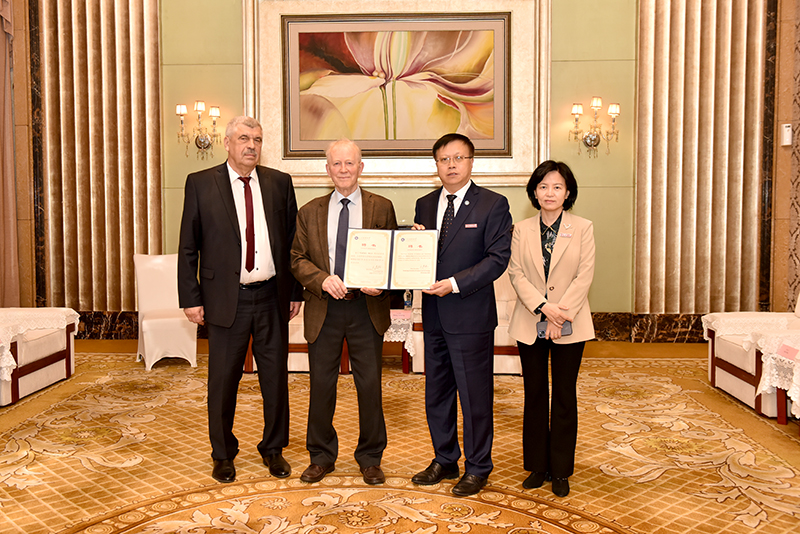 为白俄罗斯国家科学院院士拉德米尔·别雷颁发荣誉教授聘书