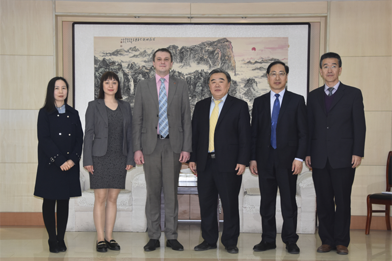 4月3日,乌克兰哈尔科夫卡拉金国立大学副校长Anton Panteleimonov一行来校交流讲学,校长姚庆国、副校长孙鹤汀会见了Anton Panteleimonov一行。