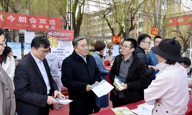 校领导罗公利、姚庆国、高建广、孙鹤汀现场指导。在招聘会现场,罗公利不时和企业代表交流“这次要招聘多少人?招的怎么样?”听到一家招聘需求为700个岗位的煤矿能源企业的现状后,他感谢用人单位对学校人才培养质量的信任,认真听取了用人单位对我校人才培养、专业建设、就业指导等方面的意见和建议。校领导在现场亲切询问毕业生签约情况,鼓励大家树立正确择业、就业观念,在广阔的市场环境中奉献聪明才智、实现自己的人生价值,同时要求学校相关部门在全方位搭建招聘平台的同时,不断创新工作方法,更好的促进学校毕业生就业。