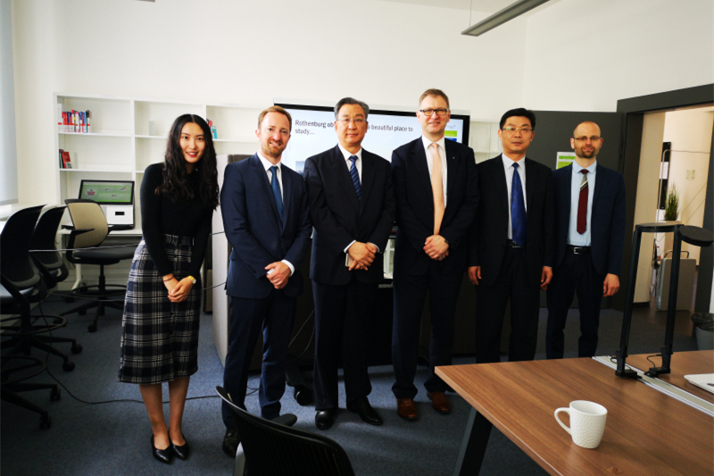 在德国安斯巴赫应用技术大学,校务委员会主席Ing.Ulf Emmerich,经济工程系负责人Nobert Kaiser,应用技术系教授Hans Reimann,语言中心负责人Christian Gebhard及罗滕堡校区负责人Domini Koegel热情欢迎代表团一行。双方回顾了两校十几年来的友好合作历程,并就经济类专业进一步开展硕士合作项目等进行了详细的磋商。6月17日,中德生态园驻德国代表处赵卫及巴伐利亚州对华高教中心主任Philipp Dengel也参与了会谈,两校三方就去年达成共建微校园项目的意向进行了深入探讨并达成了一致意向。代表团在安斯巴赫应用技术大学经济工程系及化工系负责人的陪同下,参观了罗滕堡校区及相关实验室。代表团还与我校在安斯巴赫应用技术大学的学生进行了座谈。