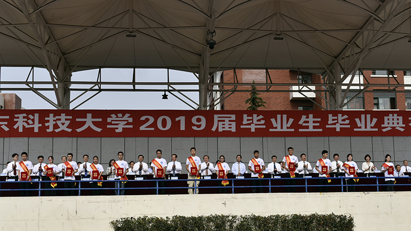 毕业典礼上,还举行了隆重的毕业生宣誓仪式。全体毕业生面对鲜红的国旗庄严宣誓,表达了“爱党爱国,牢记使命,爱校荣校,勤学笃行,爱岗奉献,敬业实干,惟真求新,敢于担当,坚韧不拔,发奋图强,不忘初心,勇做新时代追梦人”的人生誓言。