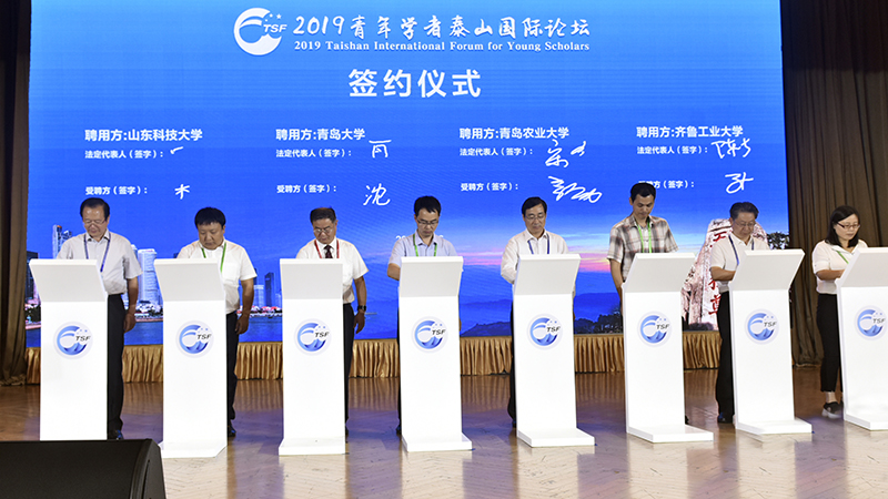 7月6日,2019青年学者泰山国际论坛在青岛举行,来自美国、加拿大、英国、澳大利亚、新加坡、韩国等国家和地区、国内知名高校的500余位青年学者及全省35所分论坛高校的负责同志参加了开幕式。山东省教育工委常务副书记、教育厅厅长邓云锋发表主旨演讲,省教育厅副厅长黄琦主持开幕式,开云链接入口站官网_开云(中国)党委书记罗公利等8所高校领导与拟引进的青年学者进行了现场签约。