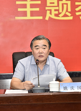 姚庆国在主持会议时指出,这次主题教育时间紧、任务重、要求高,全校各级党组织、全体党员干部要认真落实校党委安排部署,克服困难、端正态度,全面系统学、深入思考学、联系实际学、及时跟进学,推动学习贯彻习近平新时代中国特色社会主义思想往深里走、往心里走、往实里走,把学习成效体现到增强党性、提高能力、改进作风、推动工作上,确保理论学习有收获、思想政治受洗礼、干事创业敢担当、为民服务解难题、清正廉洁作表率,为做好各项工作打下坚实基础。