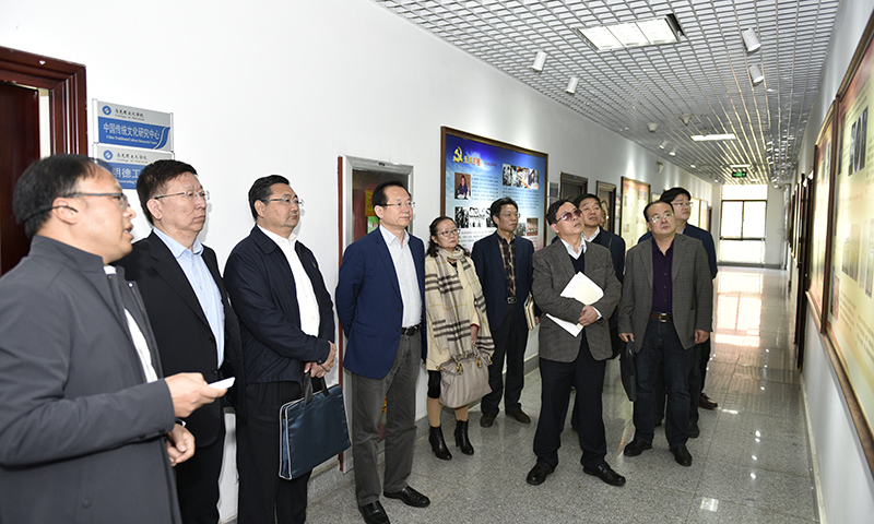 在现场参观学习中,大家饶有兴致地观看马克思主义学院“光辉历程•马克思主义在中国”“领航新时代”文化长廊图片、史料,听取讲解,并不时地针对文化长廊中的一些历史关键时间、节点及细节内容进行认真地交流、研讨。