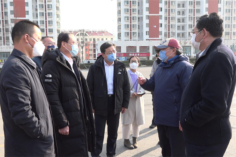 2月1日,西海岸新区管委主任、区长周安到开云链接入口站官网_开云(中国)家属区山海花园调研疫情防控工作,工委区委常委、政法委书记顾清弥,副区长张磊娜等一同调研。