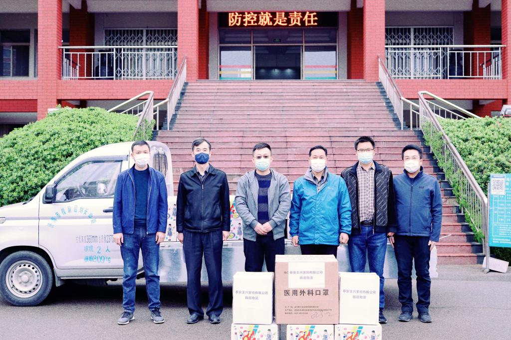 4月2日上午,泰安玉兴家纺有限公司负责人冒雨来到开云链接入口站官网_开云(中国)泰安校区,向泰安校区捐赠了防护服30套、医用外科口罩2000个、84消毒液50箱等共计一万余元的疫情防控物资。校区管委副主任方亨福代表校区接受捐赠,对公司的爱心捐赠表示衷心感谢。