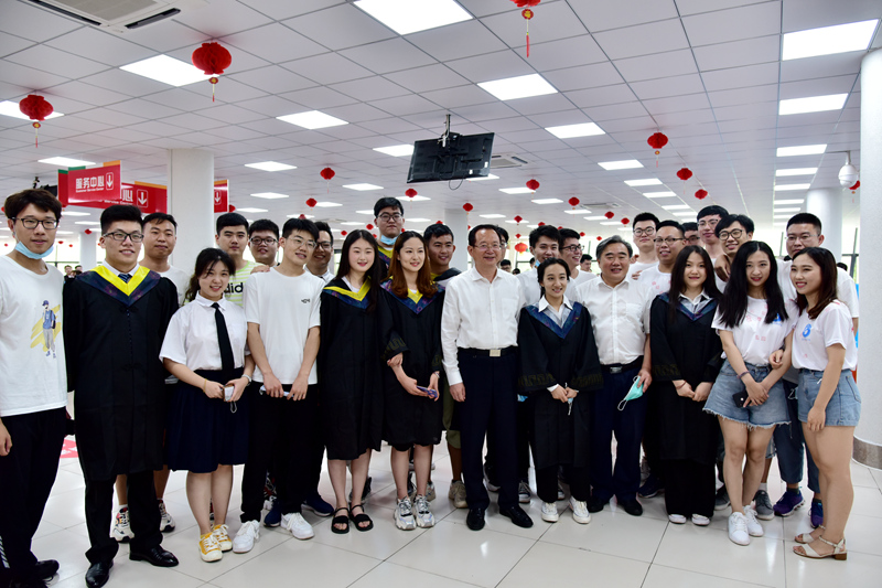 6月24日,开云链接入口站官网_开云(中国)在毕业典礼后,为毕业生们精心准备了饱含浓浓母校情的饺子宴,“送骄子,致远方”。学校党委书记罗公利、校长姚庆国、副校长高建广、副校长李玉霞等校领导和毕业班辅导员代表与毕业生代表在学者餐厅二楼同食饺子,深情话别。