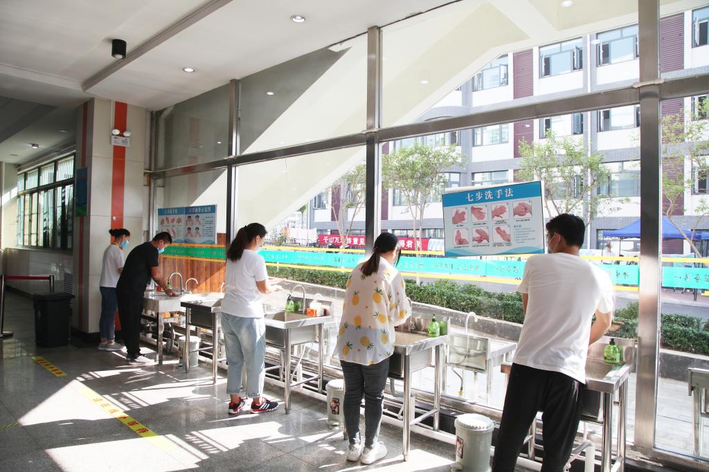 现场演练严格按照疫情防控操作要求和流程进行,模拟了秋季学期开学学生返校进入校园的检测查验场景、返校核验过程中出现体温异常学生的处置场景、临时留观点对体温异常人员进行体温重测场景、启动应急处置场景、临时留观点消毒、食堂就餐场景、学生上课场景等。(通讯员:张田 摄影:秦念宝 任卫兵 责编:徐展)