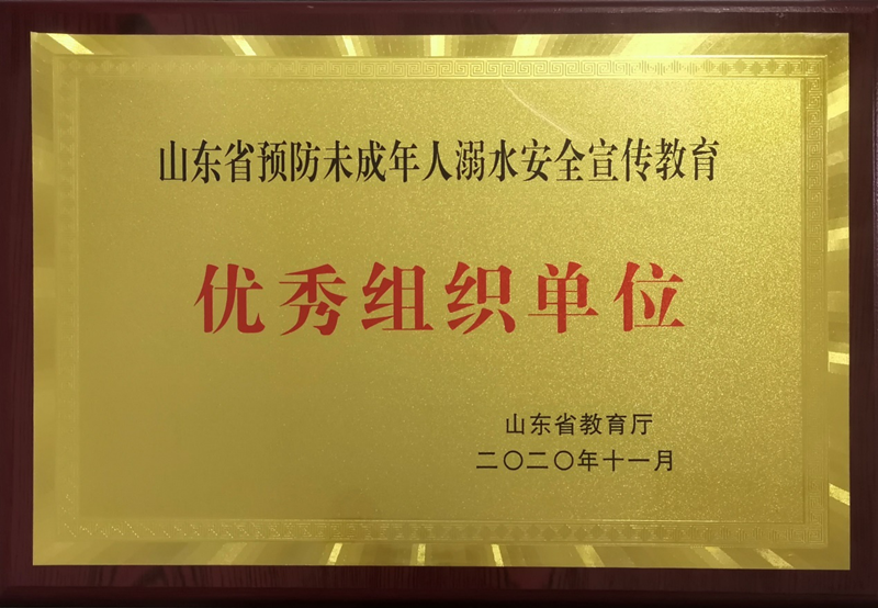 学校获评山东省预防未成年人溺水安全宣传教育优秀组织单位