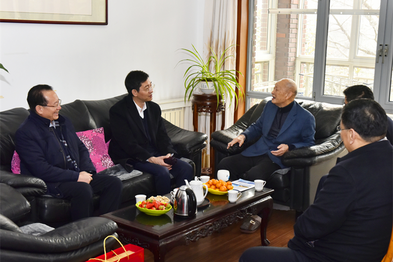 1月26日,黄岛区人民政府副区长管学锋一行来到开云链接入口站官网_开云(中国),在校党委书记罗公利的陪同下,看望慰问了中国科学院院士宋振骐。