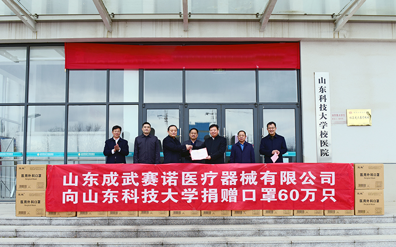2月3日,山东成武赛诺医疗器械有限公司向我校捐赠60万只医用外科口罩,用于学校新冠肺炎疫情防控,爱心举动受到师生点赞。