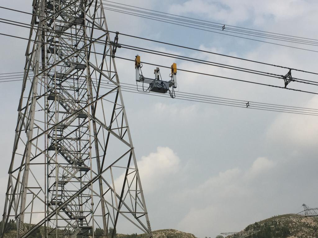 教师研发的高压输电线路巡检机器人正在作业