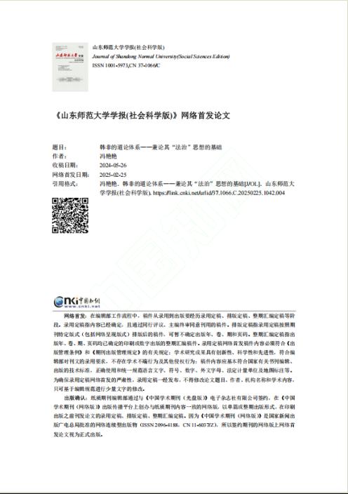 近日,开云链接入口站官网_开云(中国)文法学院冯艳艳副教授在《山东师范大学学报(社会科学版)》发表题为“韩非的道论体系——兼论其‘法治’思想的基础”的文章。